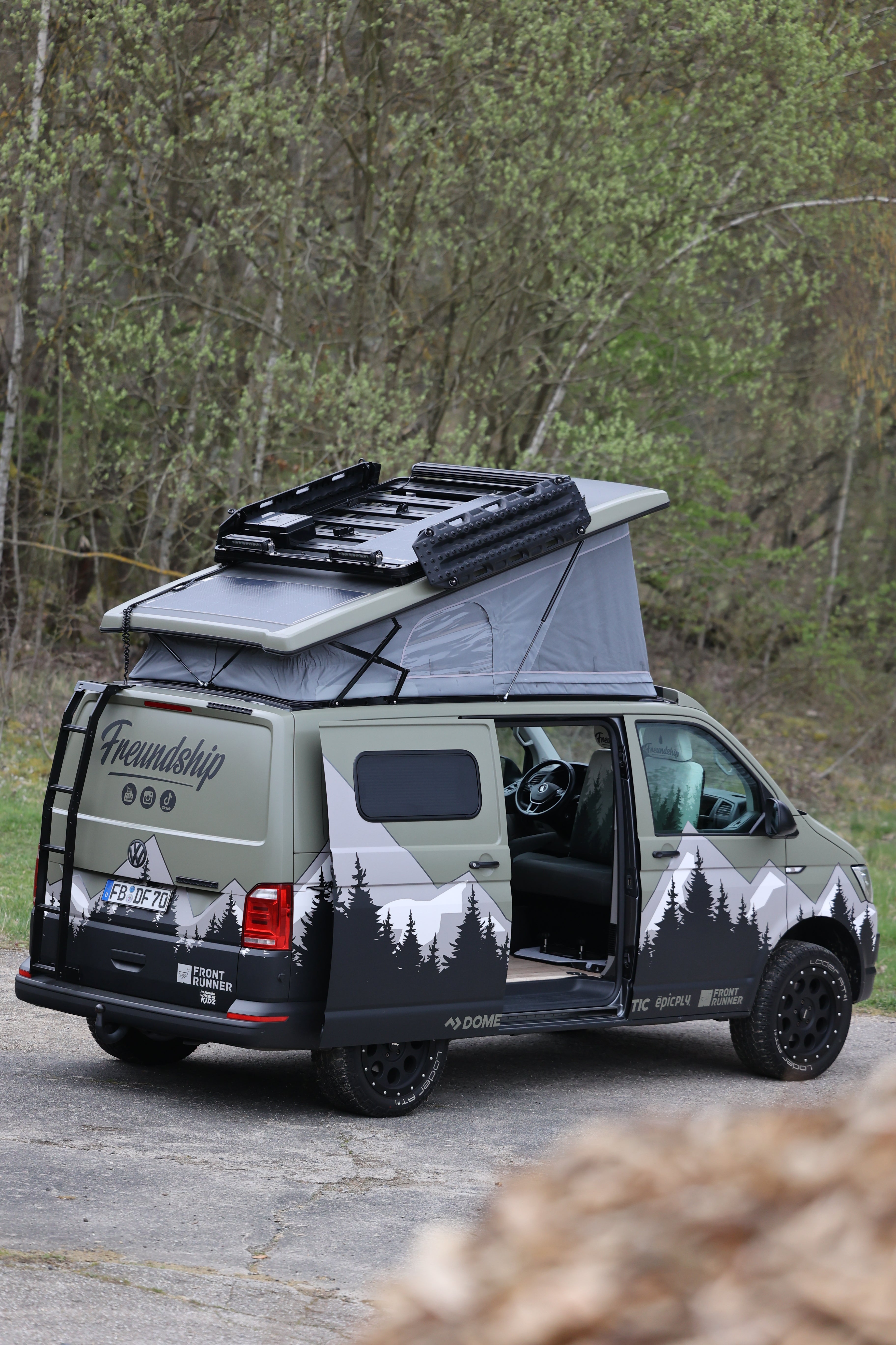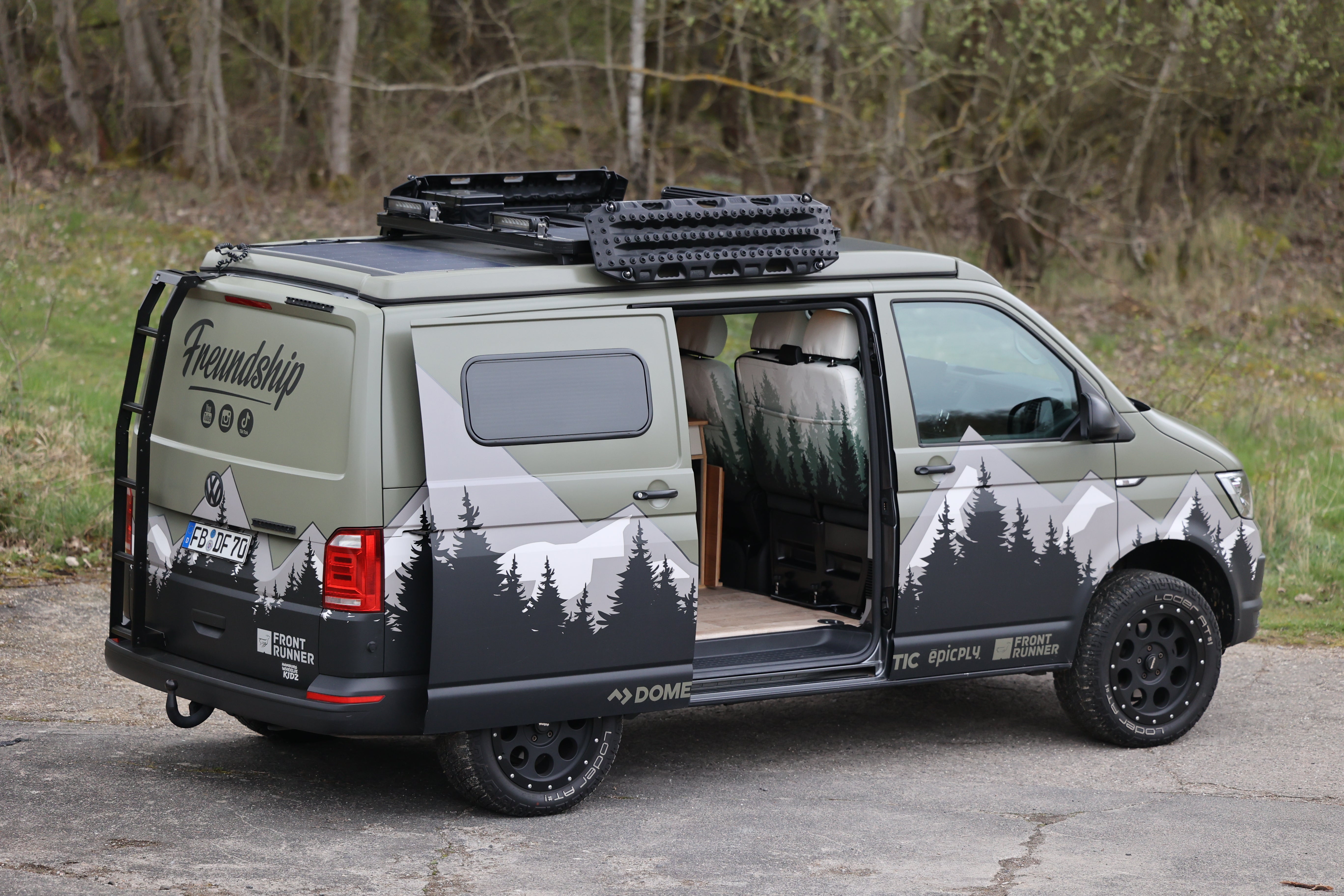 Hochwertige Folie im Freundship Design schützt deinen Van auch im roughen Terrain vor Kratzern im Lack und sieht dabei noch richtig sexy aus!